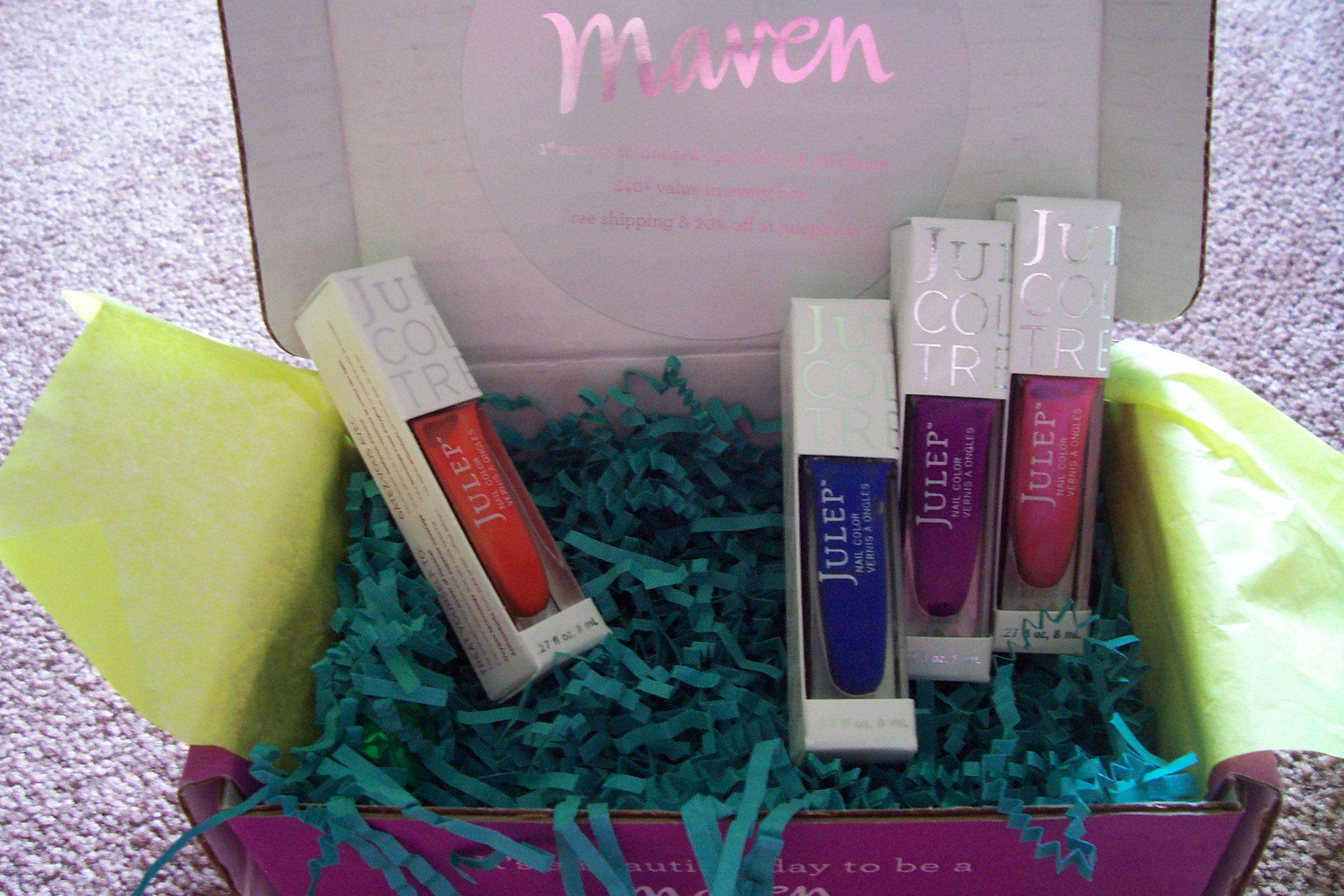 So: nail polish seems to be a regular occurence with these posts, which is due to the ever-awesome Julep Maven Box, which you can see in the picture below.