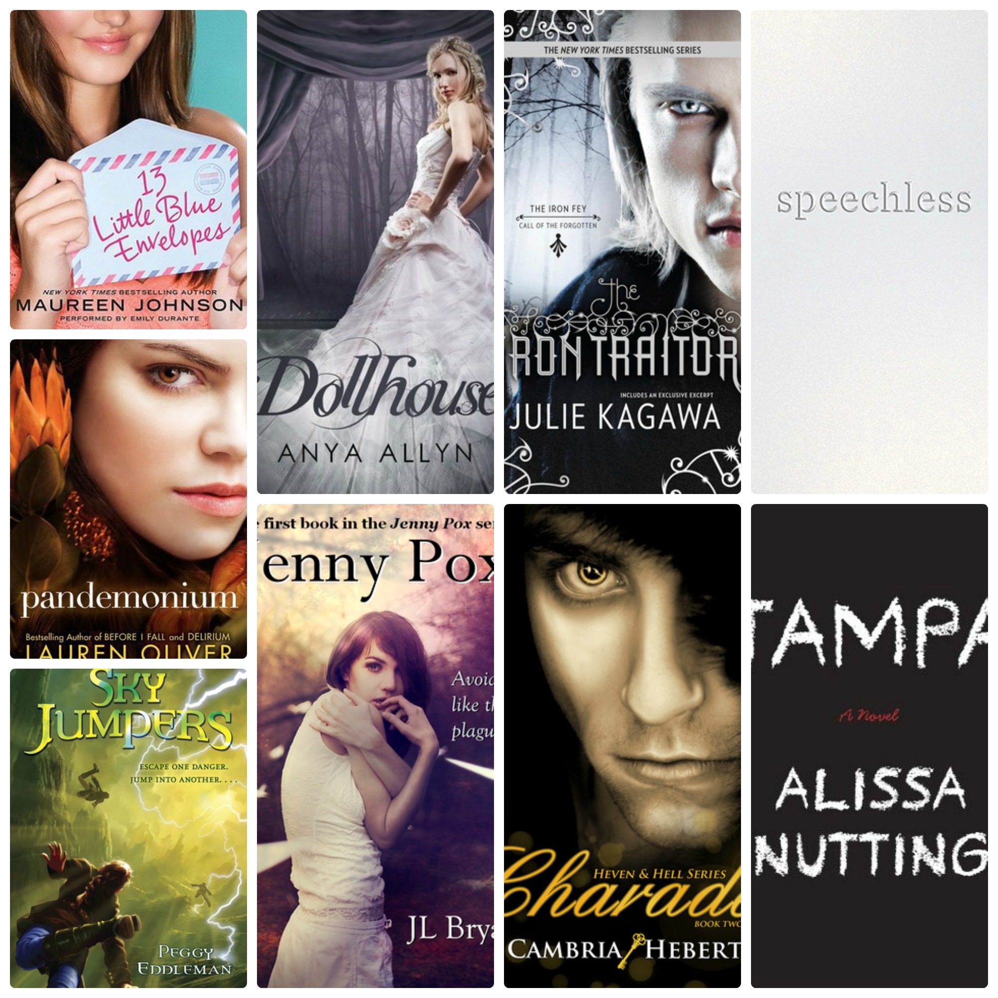 - Simple Covers: Tampa by Alyssa Nutting and Speechless by Hannah Harrington. I’ve already talked about simple covers I like, but these would not get my attention in a bookstore.