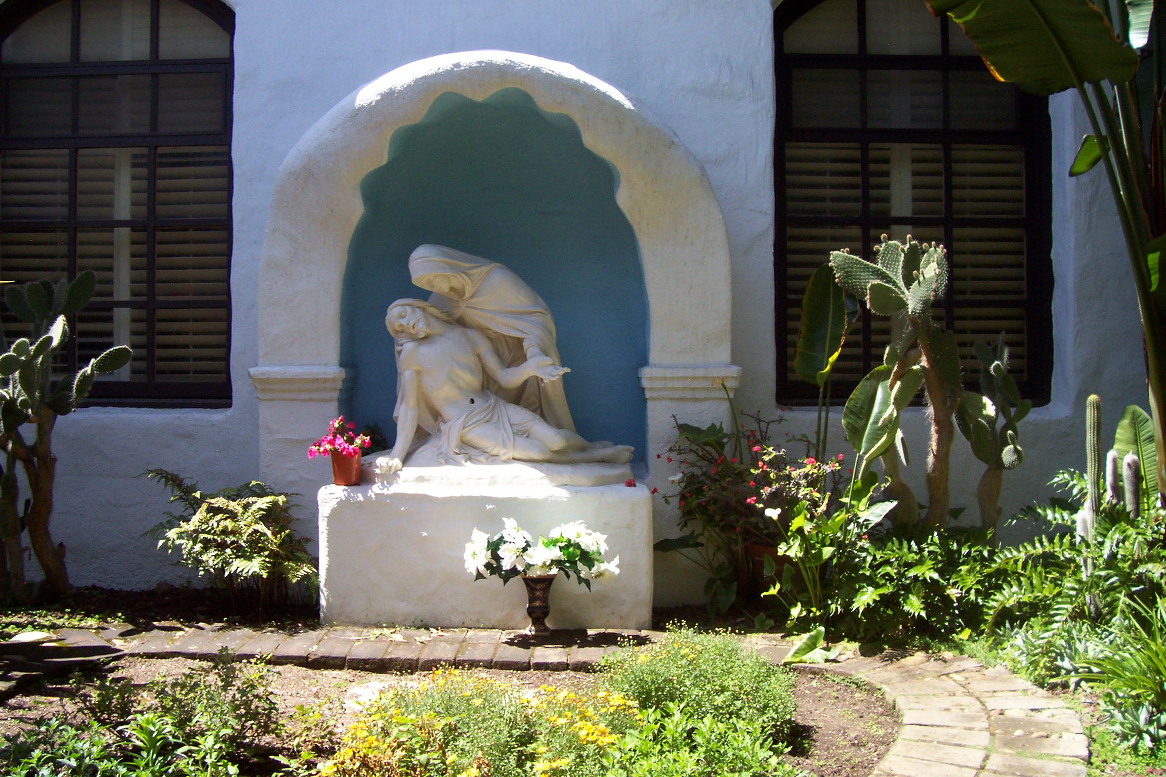 This cross is dedicated to Father Luis Jayme, who is the 1st Christian matyr in California. He died in an attack on the mission in 1775. I think we’re on the 5th church.