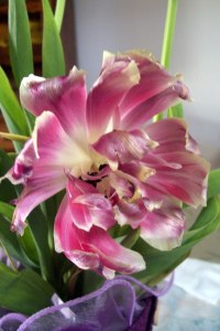 The wedding was really nice, and I’m really glad I got to go. It was pretty casual, and it rained a little, but at least the rain held off until after the wedding…which was outdoors, and even then, it rained a little and then everything was fine. I didn’t get any pictures of the actual wedding or the reception, mostly because I don’t have a smart phone, and felt awkward busting out the digital camera. I wish I got a picture of the cake, which was really cool- it was a Wonder Woman/Batman cake! The centerpieces were pretty cool too- flowers inside of cassettes, which I assume were glued together (I didn’t think of getting a picture until the next day, but there’s nothing I can do about that. Same thing with the place settings, which were records!