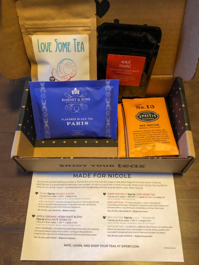 - Tea. I love having a Sips By box, because of all of the teas I get to try!